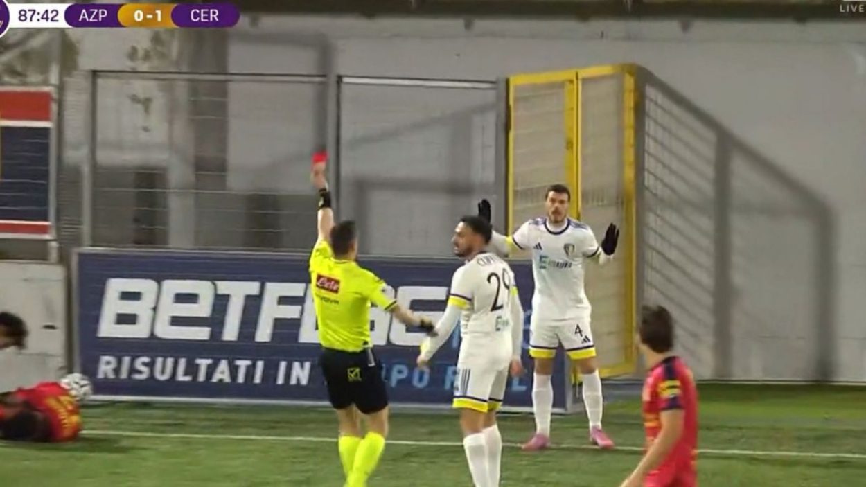 All’88 riceve un secondo cartellino giallo, quindi espulsione, per fallo su Guadagni lasciando i pugliesi in dieci.